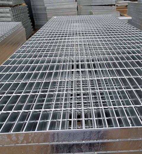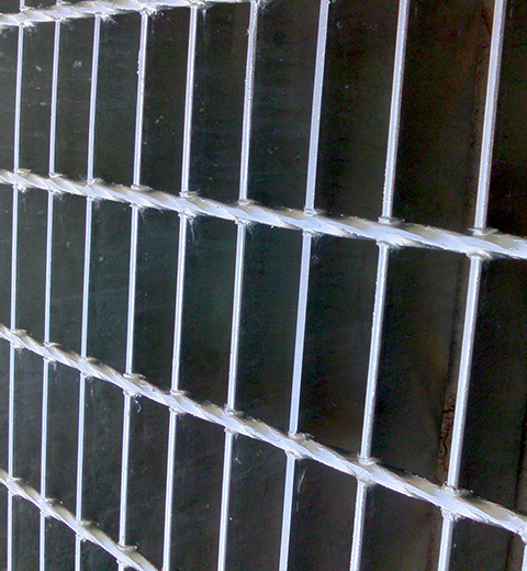 熱浸鋅鋼格柵是由負(fù)載扁鋼和橫桿按一定間距經(jīng)緯排列,在高壓電阻焊機(jī)上焊接而成原板,經(jīng)切割、切口、開孔、包邊等工序深加工而成客戶要求的成品。